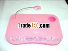 If you like working in bed with your notebook on yourlap then this is the perfect product for you! This Lamp Desk on Lapis designed for those who want the freedom of having a notebook ontheir lap as they surf the internet, play games and just simplydoing their work. The provided cup holder is a welcome feature, aswell as the desk lamp. Those long nights while working in bed withthe lights off is now a possibility without straining youreyes!